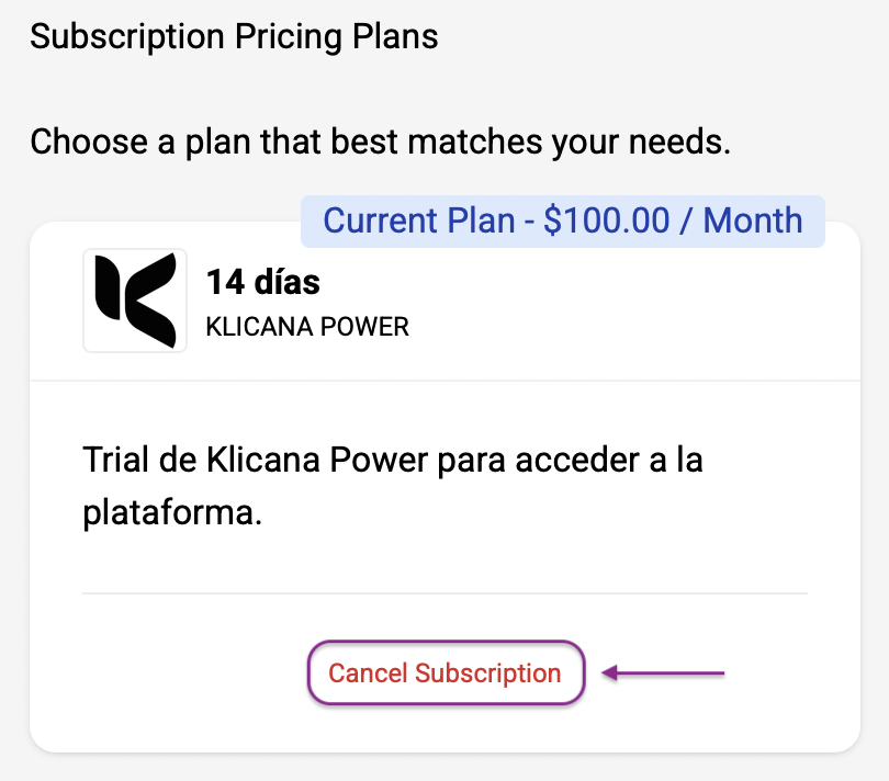 6. Elige la opción "Cancel Suscription" dentro de tu plan activo